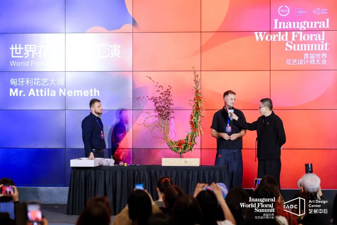 在开幕仪式上,花艺大师阿提拉与吴勉联袂献上精彩绝伦的开场表演。阿提拉将匈牙利传统艺术与现代设计语言完美融合,展现了中欧花艺的独特魅力。吴勉则以其标志性的架构花艺技法,将独具东方特色的竹子融入到架构花艺中,引发观众阵阵惊叹。另外来自马来西亚、新加坡、巴基斯坦、香港和澳门等花艺大师们也献上了惊艳四座的花艺演绎。