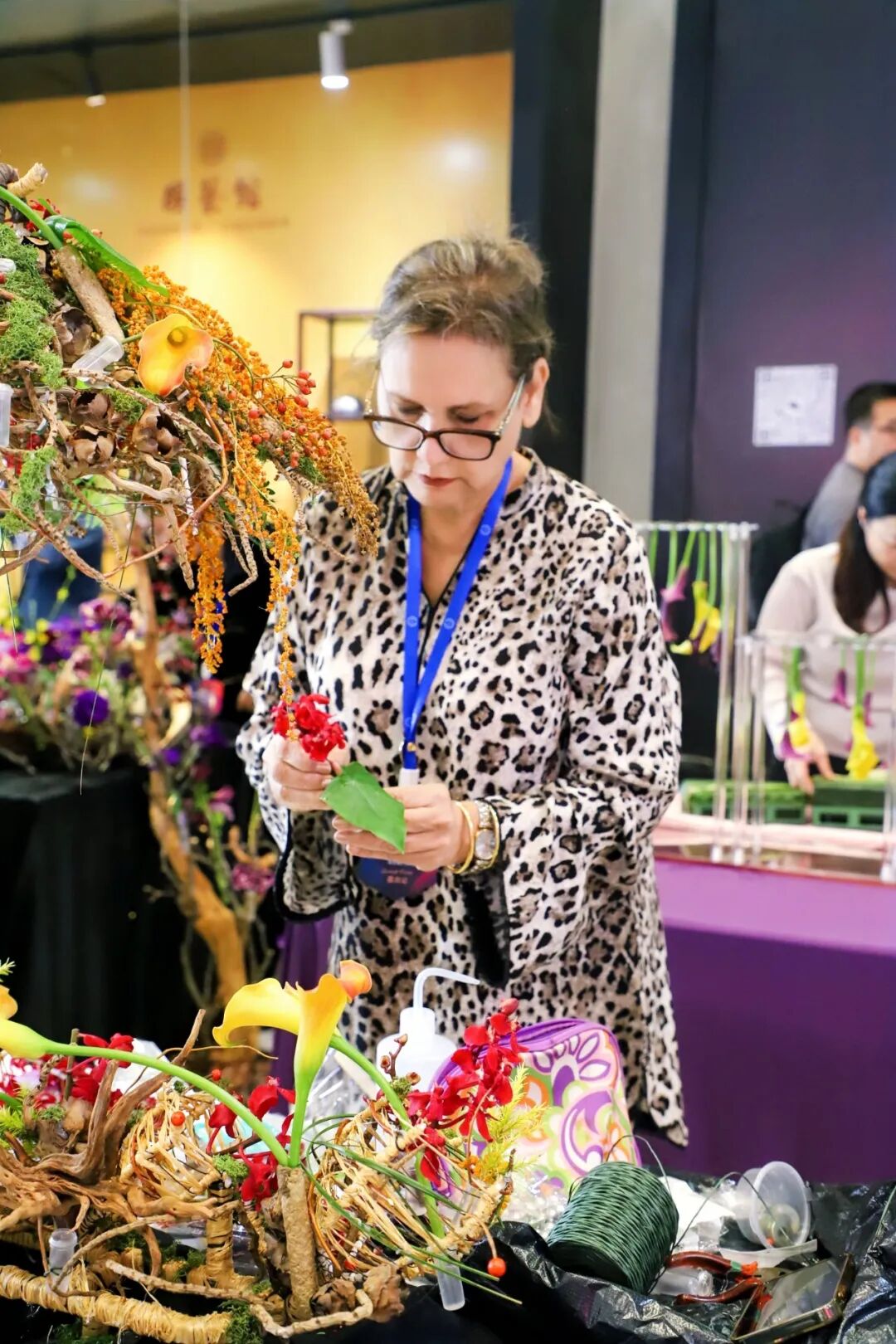 11月26日,花艺大会迎来两场核心赛事——“国际餐桌花设计比赛”与“人体花艺比赛”,一静一动,相映成趣,共同诠释了花艺在不同维度上的应用之美。在餐桌花赛区,花艺师们以桌面为画布,精心构筑兼具美学品味与实用功能的微型景观,方寸之间尽显生活美学的无限可能。